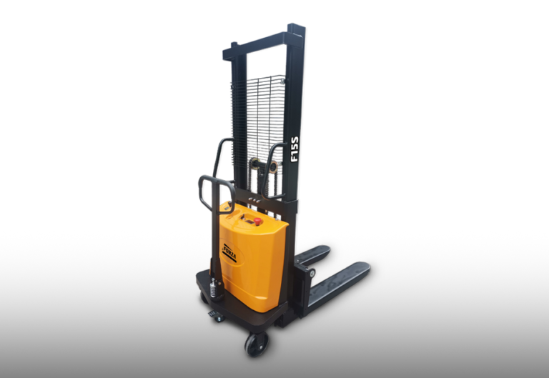 Empilhadeira semi elétrica com estrutura de torre e chassi reforçados promovendo maior durabilidade dos componentes.
