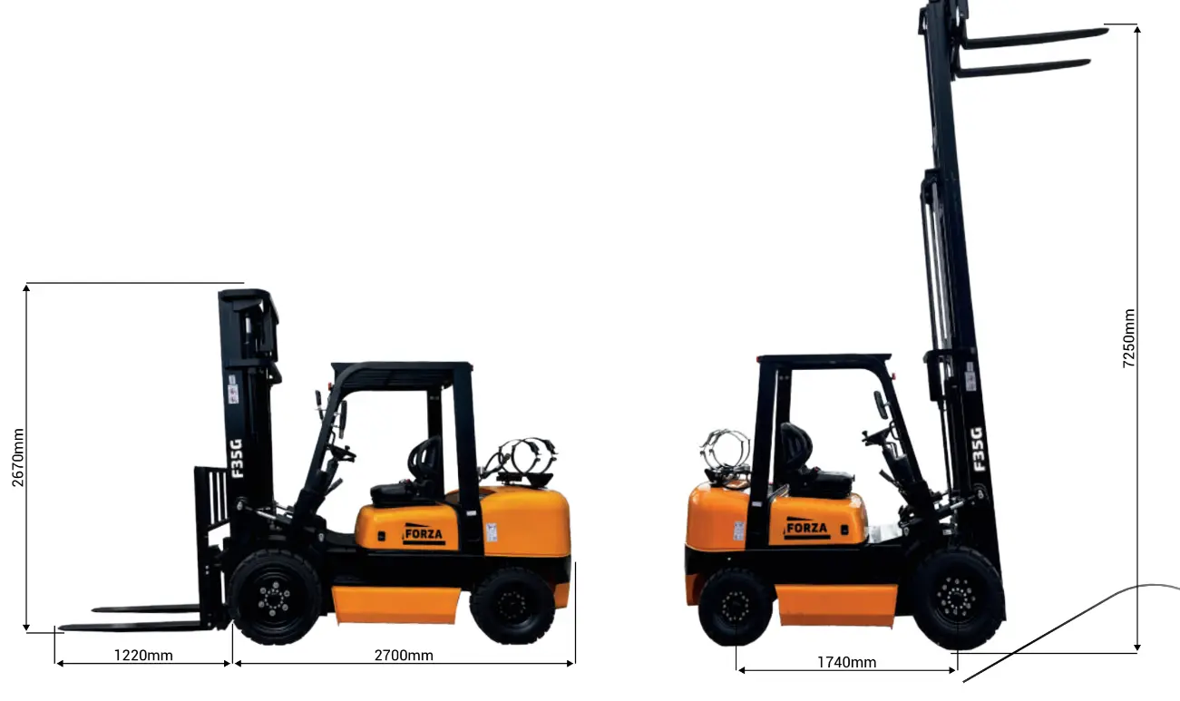 Empilhadeira com cinto de segurança retrátil, giroflex já instalado, toda iluminação em led para maior luminosidade e sinalização, espelhos retrovisores laterais e um central côncavo com 180° de visibilidade.