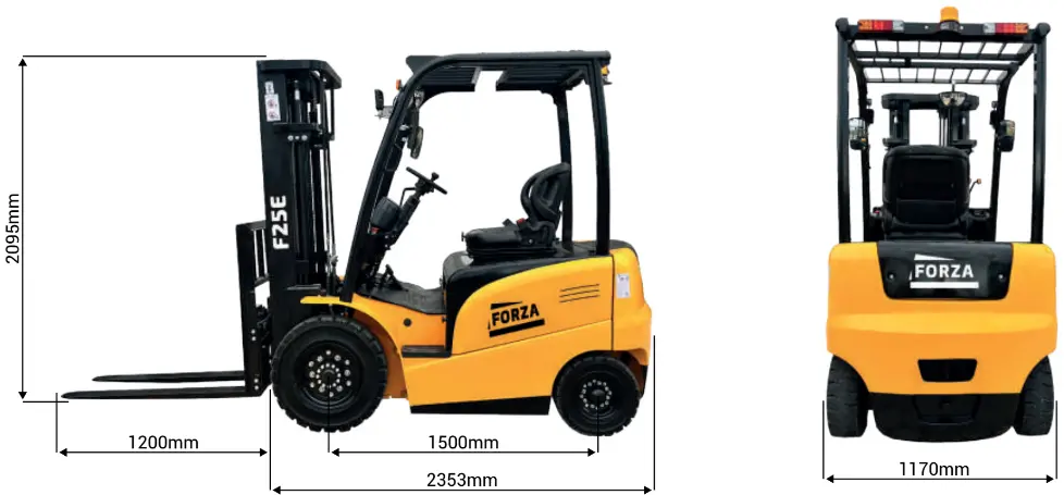 Empilhadeira com cinto de segurança retrátil, giroflex já instalado, toda iluminação em led para maior luminosidade e sinalização, espelhos retrovisores laterais e um central côncavo com 180° de visibilidade.